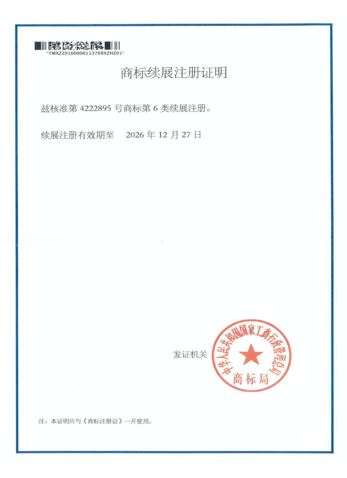 商标续展注册证
